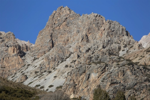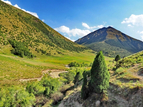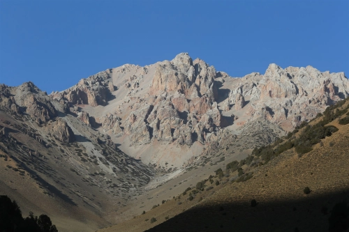 Выше начинаются арчовники, а за ними -суровый скальный массив Дым-Бол. Это уже территория больших походов, панорам, настоящего высокогорья - и та самая зона, где всё чаще фиксируют следы снежного барса.