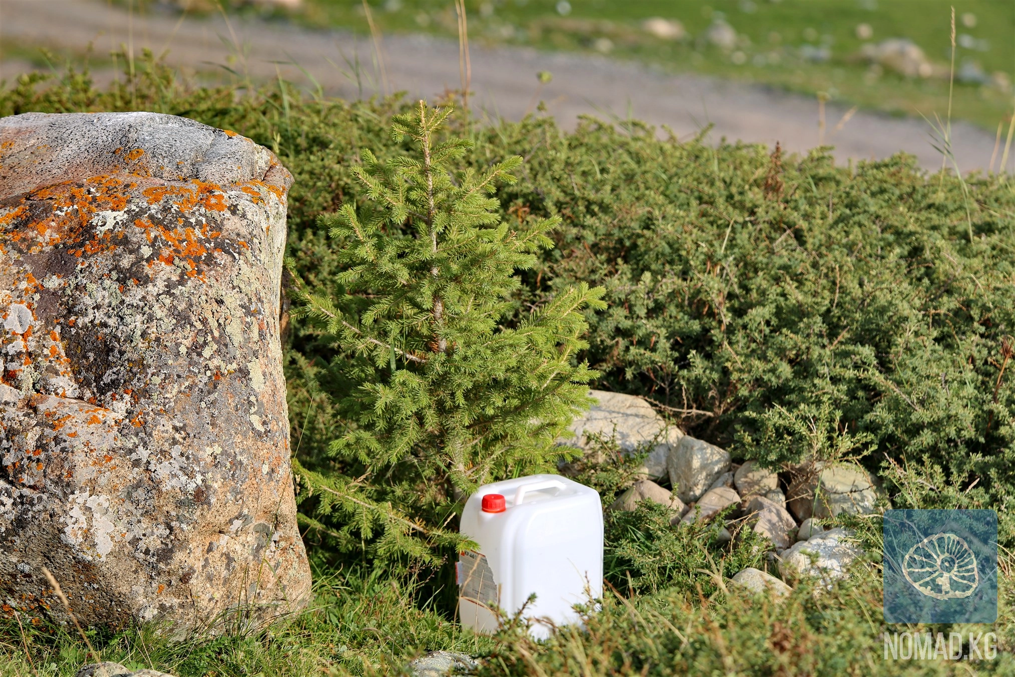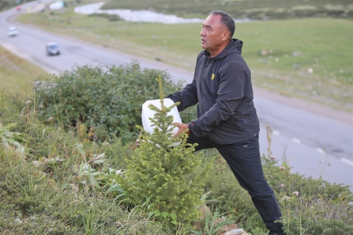 Несколько лет назад группа экологических активистов начала на перевале Өтмөк то, что сложно назвать просто акцией. Инициатива «Жалгыз Карагай - Топ Карагай» родилась как попытка вернуть в высокогорье то, что здесь было утрачено: горный лес. Под руководством эколога и общественного деятеля Гамала Соронкулова, регионального директора экологической платформы Ecostan.kg и соучредителя «Эко-Аян», активисты начали высадку саженцев деревьев, подобранных с учётом местной экосистемы. Рядом с тянь-шаньской елью появились саженцы арчи, привезённые из Нооката и Чон-Кемина, а также тянь-шаньская берёза из Ала-Буки. Это не случайный набор растений, а продуманный диалог регионов - обмен генетической и экологической памятью внутри страны.