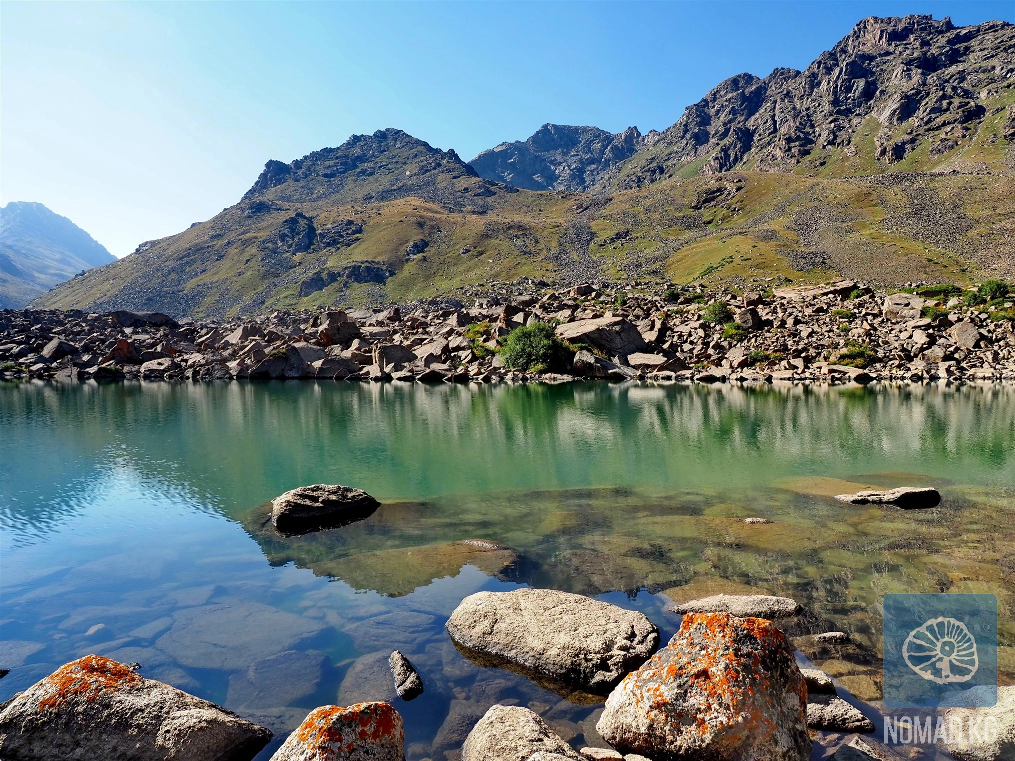 Летом поверхность озера бывает настолько гладкой, что отражение гор выглядит как идеальная копия реальности. Вокруг - кольцо снежных вершин Таласского Ала-Тоо, россыпи альпийских цветов и редкие стада яков, приходящих к воде. Обитатели озера-осман, форель ручьевая, сиг, пелядь- остаются почти незаметными: Беш-Таш - не про рыбалку, а про созерцание. Это охраняемая территория, и природа здесь требует уважения.
