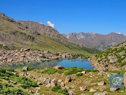 Национальный парк Беш-Таш, что в переводе означает «Пять камней», тянется узкой цепью вдоль горного хребта Таласского Ала-Тоо. По хорошему гравийному серпантину вверх по ущелью реки Беш-Таш, кажется, что машина вот-вот упрётся в небо. И в какой-то момент это почти случается: дорога выводит на широкое плато на высоте около 3000 метров, преодолев на которой каменистую гряду перед вами раскрывается главное сокровище парка - высокогорное озеро Беш-Таш, раскинувшееся на высоте около 3000 метров над уровнем моря.